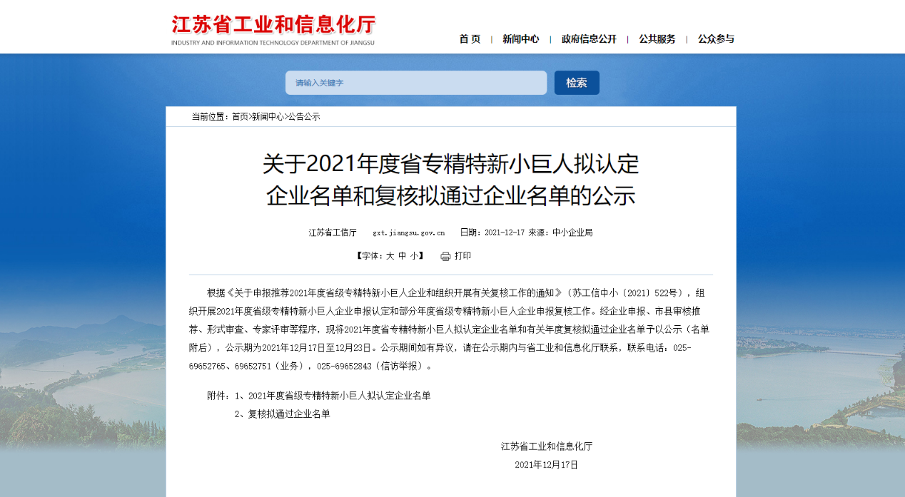 近日,江蘇省工信廳公布2021年度省專精特新小巨人擬認(rèn)定企業(yè)名單和復(fù)核擬通過企業(yè)名單,江蘇拓米洛環(huán)境試驗(yàn)設(shè)備有限公司獲得了小巨人企業(yè)(制造業(yè))的認(rèn)定。