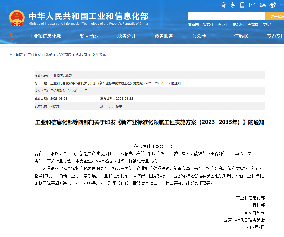 《實施方案》主要聚焦新興產(chǎn)業(yè)與未來產(chǎn)業(yè)標(biāo)準(zhǔn)化工作,形成“8+9”的新產(chǎn)業(yè)標(biāo)準(zhǔn)化重點領(lǐng)域。其中,新興產(chǎn)業(yè)聚焦新一代信息技術(shù)、新能源、新材料、高端裝備、新能源汽車、綠色環(huán)保、民用航空、船舶與海洋工程裝備等八大領(lǐng)域;未來產(chǎn)業(yè)聚焦元宇宙、腦機接口、量子信息、人形機器人、生成式人工智能、生物制造、未來顯示、未來網(wǎng)絡(luò)、新型儲能等九大領(lǐng)域。