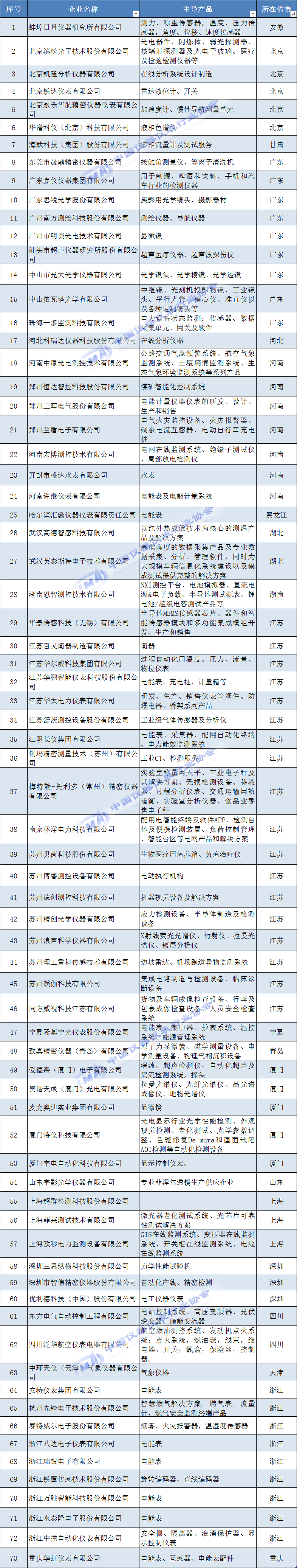 入選第六批專精特新“小巨人”企業(yè)公示名單中的儀器儀表行業(yè)企業(yè):