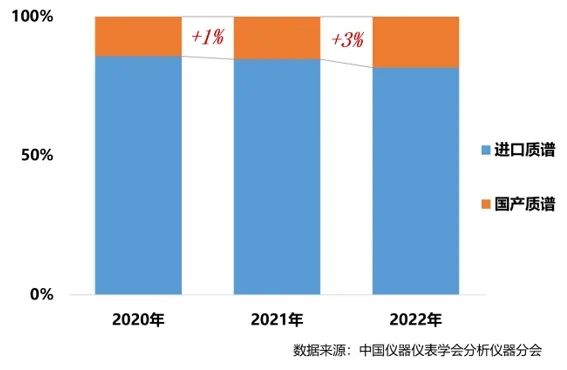 2020-2022年進(jìn)口&國(guó)產(chǎn)質(zhì)譜銷量占比變化