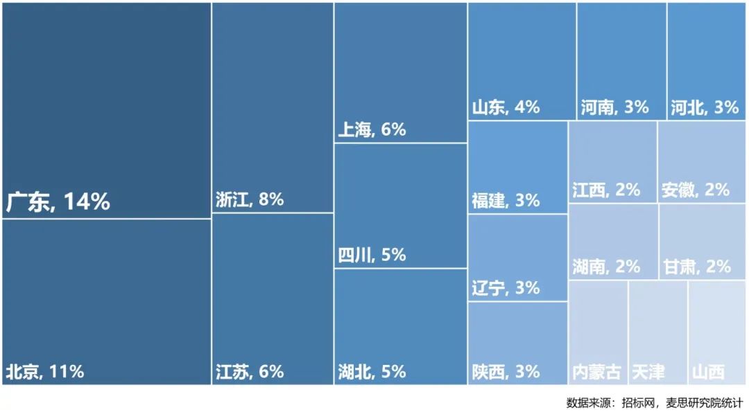 2020-2022年質(zhì)譜采購(gòu)金額Top20省市占比