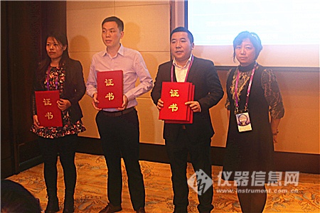 接著,中國儀器儀表行業協會高級顧問閆增序、北京科學儀器裝備協作服務中心主任孫月琴、北京材料分析測試服務聯盟秘書長關璐分別為到場的獲獎儀器企業代表頒獎。