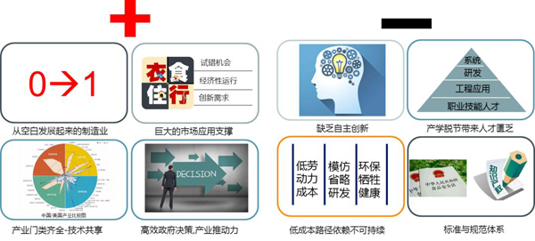 然而,我們也必須看到我們所面臨的挑戰(zhàn),存在一些問題,我們不必妄自菲薄,但要有清晰認(rèn)識,我們在自主創(chuàng)新方面仍然有待提高,依賴于傳統(tǒng)低勞動成本、模仿省略研發(fā)成本缺失去創(chuàng)新能力、犧牲環(huán)保的發(fā)展路徑也是不可持續(xù)的。國家也越發(fā)重視社保的投入與監(jiān)管,不斷加強(qiáng)知識產(chǎn)權(quán)的保護(hù),以及在環(huán)保方面的力度,這些都使得我們原來那些依賴低價優(yōu)勢的企業(yè)必須要去轉(zhuǎn)型。人才是一個基礎(chǔ)話題,今天我們要發(fā)展人工智能、智能制造、工業(yè)互聯(lián)網(wǎng)都需要大量的高品質(zhì)人才,包括現(xiàn)場的高技能職業(yè)工人。