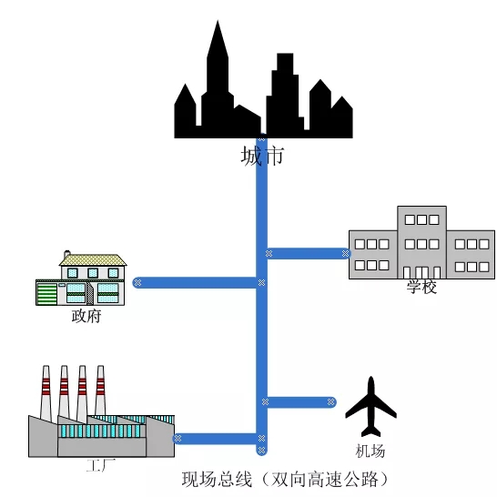 現(xiàn)場(chǎng)總線猶如可以雙向同時(shí)多輛車(chē)高速行駛的高速公路,每個(gè)設(shè)備只需要連接至高速公路。