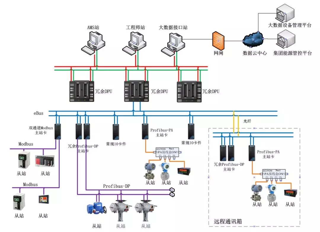 網(wǎng)絡(luò)架構(gòu)層次清晰:現(xiàn)場(chǎng)總線設(shè)備網(wǎng)絡(luò)、ebus IO網(wǎng)絡(luò)、eNet雙冗余控制網(wǎng)絡(luò):