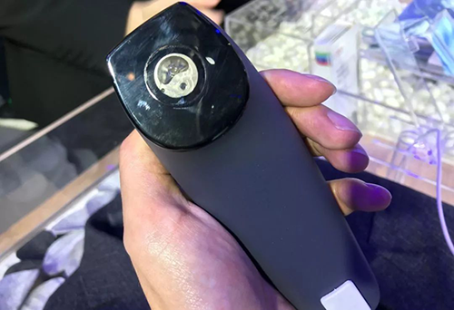 X-Spect整體重量大概跟一部手機差不多,看X-Spect的反面,就可以看到核心部件——SE的近紅外光譜掃描傳感器,看外觀尤其像手機內置攝像頭。