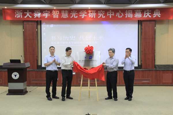 在當天的揭幕慶典上,葉遼寧發表了熱情洋溢的講話,并和王文鑒、浙江大學科研院開發與技術轉移部部長翁宇、光電科學與工程學院院長劉向東一起,共同為中心的落成揭牌。