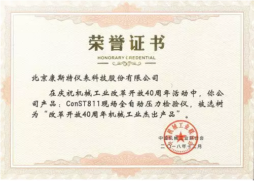 摘要:康斯特公司“ConST811現場全自動壓力校驗儀”成功入選“改革開放40周年——機械工業杰出產品”,本活動由中國機械工業聯合會組織開展,旨在通過集中征集宣傳一批標志性產品,充分展現機械工業拼搏奮斗的發展軌跡,展示廣大企業創新進取的重要成果,以擴大行業影響力。