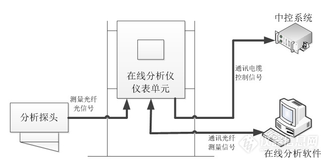 聚光科技在四川某酒廠成功實施了一套用于酒醅檢測的近紅外在線分析系統。其系統框架如下圖5所示。在線近紅外系統以在線近紅外分析儀為核心,包括在線近紅外儀表單元、分析探頭以及有關輔助設施等組成部分。整個系統具有如下特點:可以同時測量水分、淀粉、酸度等多個參數,測量速度快,具有很高的測量精度,具備自動參比校準功能,從而很好地校正光學視窗污染的影響,系統結構堅固抗震動能力強,可適應于惡劣現場環境等特點。