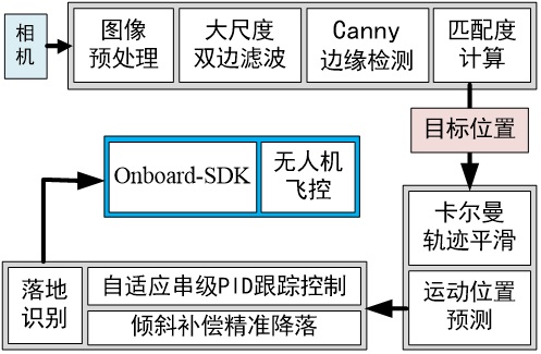 針對上述問題,科研人員設(shè)計并實現(xiàn)了基于視覺技術(shù)的車載無人機系統(tǒng)。此無人機搭載在地面的排爆機器人上,可根據(jù)需要一鍵起飛,并且能實時跟蹤地面機器人進行協(xié)同飛行,為地面機器人提供第三視角。也可以遙控進行遠(yuǎn)程偵查,主動目標(biāo)搜索,對現(xiàn)場環(huán)境進行預(yù)先判斷,抓取作業(yè)時可為操作手提供第三視角進行輔助等。執(zhí)行完任務(wù)后無人機可一鍵自主返航,并且精確降落在地面機器人平臺上,然后隨機器人一同返回。該研究得到了國家重點研發(fā)計劃的支持。