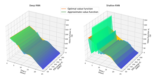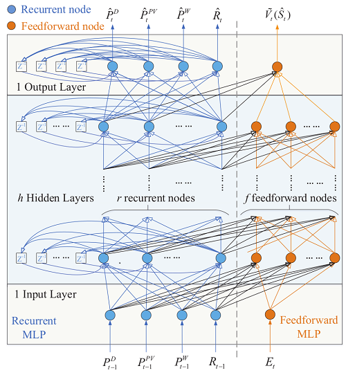 在題為Dynamic Energy Management of a Microgrid using Approximate Dynamic Programming and Deep Recurrent Neural Network Learning的研究論文中,智能微電網(wǎng)課題組在國際上首次提出了一種基于深度強(qiáng)化學(xué)習(xí)技術(shù)的微電網(wǎng)實(shí)時能源優(yōu)化方法。該方法考慮可再生能源出力的隨機(jī)性及其對電網(wǎng)交流潮流約束的影響,利用一個深度遞歸神經(jīng)網(wǎng)絡(luò)對微電網(wǎng)當(dāng)前運(yùn)行狀態(tài)進(jìn)行特征提取,并在保證微電網(wǎng)安全性的基礎(chǔ)上,對微電網(wǎng)各分布式發(fā)電單元進(jìn)行調(diào)度,實(shí)現(xiàn)微電網(wǎng)運(yùn)行的實(shí)時優(yōu)化控制。此外,相對于目前的微電網(wǎng)運(yùn)行控制方法,提出的方法完全是基于學(xué)習(xí)的,不需要對可再生能源出力進(jìn)行預(yù)測建模,表現(xiàn)出很好的自適應(yīng)性。該工作不僅是智能電網(wǎng)優(yōu)化調(diào)度研究中新的探索和突破,也為未來應(yīng)用人工智能技術(shù)推動智能電網(wǎng)發(fā)展提供了新的研究思路。