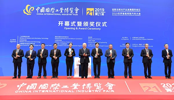 第十屆全國政協(xié)副主席、中國工程院原院長徐匡迪為10家獲獎單位頒發(fā)“中國國際工業(yè)博覽會大獎”。中國工程院院長李曉紅,上海市委副書記、市長應(yīng)勇致辭。