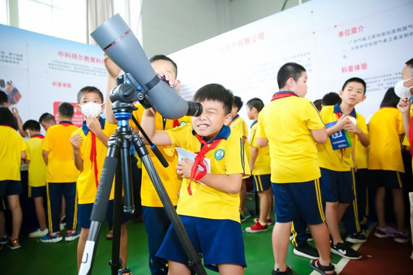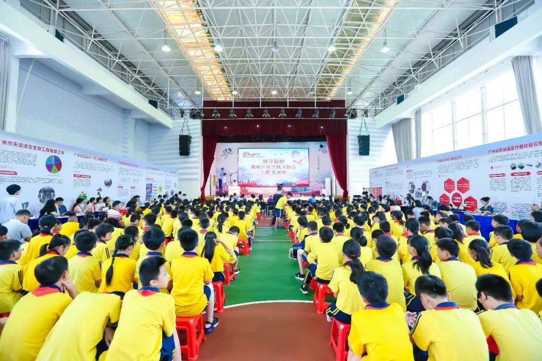 9月17日上午,以“禮贊共和國、智慧新生活”為主題的黃埔區(qū)、廣州開發(fā)區(qū)2019年全國科普日活動啟動儀式暨主場活動在黃埔區(qū)九龍第二小學(xué)拉開帷幕。廣州市科學(xué)技術(shù)協(xié)會副巡視員程志鵬,廣州市科學(xué)技術(shù)協(xié)會科普部部長黃增豪、新龍鎮(zhèn)鎮(zhèn)長李貴清、副鎮(zhèn)長何良新、黃埔區(qū)科學(xué)技術(shù)協(xié)會主席張景銘、廣州市生態(tài)環(huán)境局黃埔區(qū)分局局長李應(yīng)生、黃埔區(qū)教育局副調(diào)研員黃方亮、黃埔區(qū)科學(xué)技術(shù)協(xié)會秘書長李雪光、黃埔區(qū)九龍第二小學(xué)校長周俊勇、廣州開發(fā)區(qū)科技金融服務(wù)中心總經(jīng)理邢寶偉、黃埔區(qū)公安分局、黃埔區(qū)禁毒委員會辦公室,黃埔區(qū)市場監(jiān)督管理局、黃埔區(qū)中醫(yī)藥學(xué)會等單位以及粵嵌通信、博冠光電、香雪制藥、白云山中一藥、威凱檢測、享學(xué)教育、直通教育等36家科技企業(yè)代表、區(qū)各街道代表、九龍第二小學(xué)師生共1000余人參加。