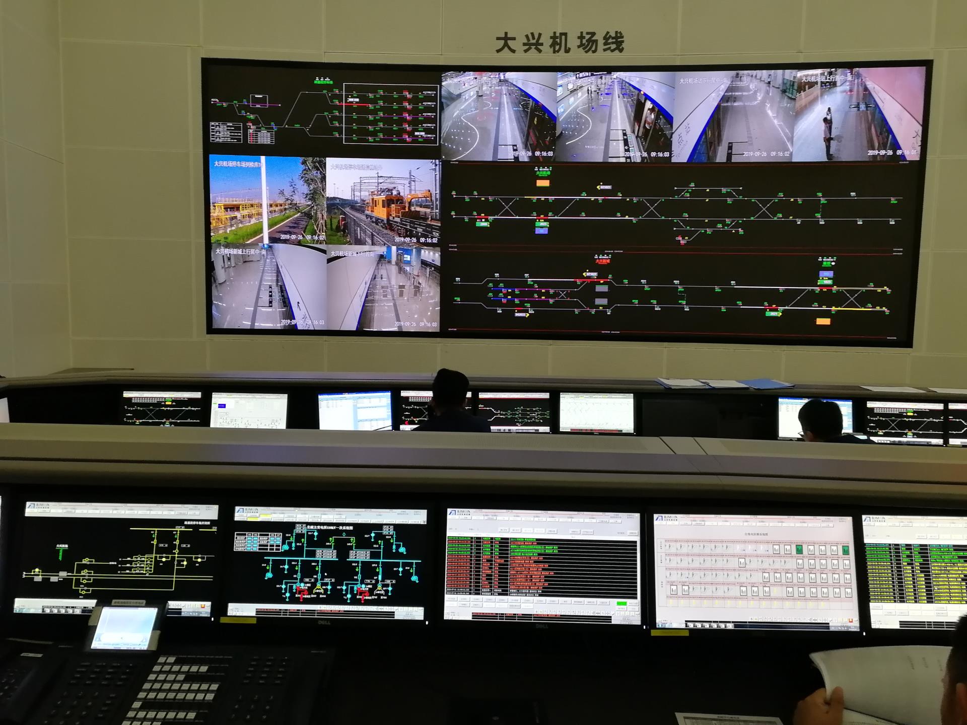 TIAS系統深度集成列車自動監控系統(ATS)、電力監控系統(PSCADA)、環境與設備監控系統(BAS);界面集成屏蔽門系統(PSD)、閉路電視系統(CCTV)、廣播系統(PA);互聯時鐘系統(CLK)、門禁系統(ACS)、乘客信息系統(PIS)、自動售檢票系統(AFC)、火災自動報警系統(FAS)、通信集中告警系統(ALM),同時連接列車控制和管理系統(TCMS),將車輛信息落地,如“空中之眼”一樣,把大興機場線上的每列車及各個車站服務器的所有數據狀態集中到大興機場線地鐵運營控制中心(以下簡稱:控制中心)顯示,工作人員在控制中心即可通過“空中之眼”即時監控整條線路各個專業設備的運行及安全狀態:各輛列車的實時位置、是否有故障或早晚點的情況、車廂內情況、車站內情況、車站各設備的運行狀況等,都通過監視屏直觀的顯示出來,供交通計劃、調度、維修、決策人員監控使用。