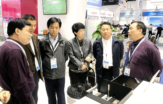 張錦茂、劉明鐘、鄭國經(jīng)、符斌、高介平等專家關(guān)注原子熒光發(fā)展并蒞臨海光展臺