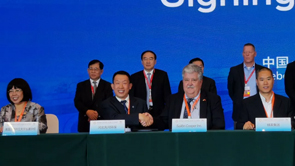 由左至右依次為:先河集團副總裁范朝、SCI總裁Mark、先河集團國際事務(wù)主管王江玲