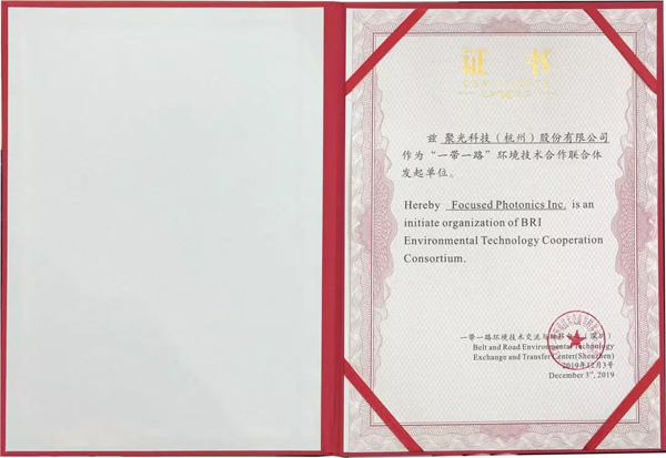 聚光科技發(fā)起單位證書(shū)