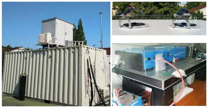 顆粒物在大氣中的垂直分布不均,且高空的垂直遷移會影響近地面的污染濃度。因此,垂直結構的觀測對于全面認識大氣污染必不可少。激光雷達系統具有測量精度高,時空分辨能力強,測量范圍大,監測實時、連續等優勢。由于遙感的目標不一樣,導致要測量的輻射信號也不一樣,這樣就產生了各種不同種類的激光雷達。米散射激光雷達是應用最廣、也是發展歷史最悠久的一種激光雷達類型,其原理是利用氣溶膠的后向米散射回波信號來探測氣溶膠光學特性如后向散射系數/消光系數的時空分布。這種激光雷達系統已被廣泛應用到對流層和平流層氣溶膠光學特性時空分布及煙霧和工業塵埃的測量中,為研究顆粒物的擴散規律提供了有效的實驗手段。米散射雷達常采用Nd:YAG的二倍頻激光輸出的532nm波段,因為背景光的影響,白天探測對流層中低層氣溶膠的高度范圍從近地面到15km高空,夜間的探測范圍可以擴展至平流層30km高空。米散激光雷達發展早,技術成熟,相對于后來發展的拉曼雷達、差分吸收雷達,系統簡單,現在已逐漸向小型化和產業化發展,在氣候、環保、國防等領域具有廣泛用途,見圖5。