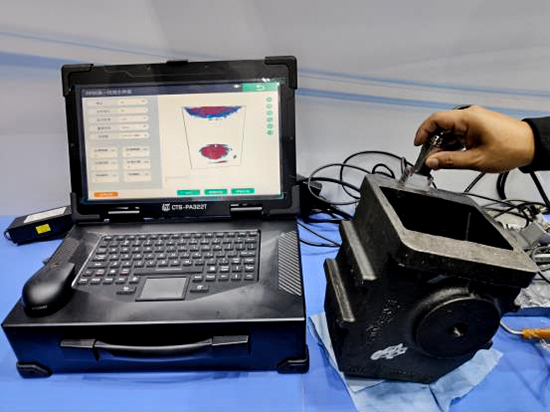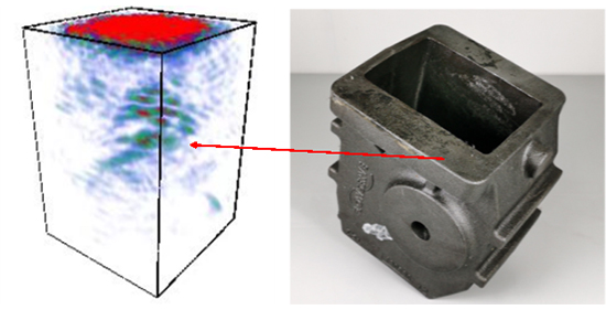 針對(duì)異型的殼體鑄件, 相控陣全聚焦實(shí)時(shí)3D超聲成像系統(tǒng)CTS-PA322T可自定義全聚焦模型,能夠?qū)崿F(xiàn)異型材料的有效全聚焦(TFM)檢測(cè).現(xiàn)我司運(yùn)用相控陣全聚焦實(shí)時(shí)3D超聲成像系統(tǒng)CTS-PA322T對(duì)殼體鑄件(材質(zhì)QT400-18)進(jìn)行檢測(cè):