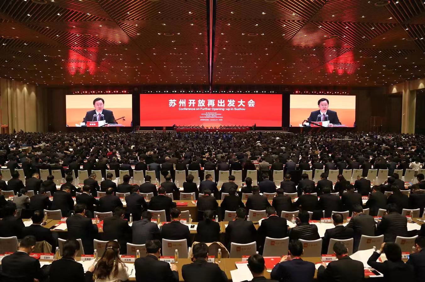2020 年1月3日,由中共蘇州市委、蘇州人民政府主辦的“蘇州開放再出發(fā)大會”在蘇州國際博覽中心金雞湖國際會議中心盛大舉行。來自海內(nèi)外約3000名創(chuàng)新創(chuàng)業(yè)人才、企業(yè)家、投資者、國際友人等齊聚金雞湖畔,共同見證蘇州高水平開放重要歷史時刻,攜手創(chuàng)造蘇州開放發(fā)展新奇跡。