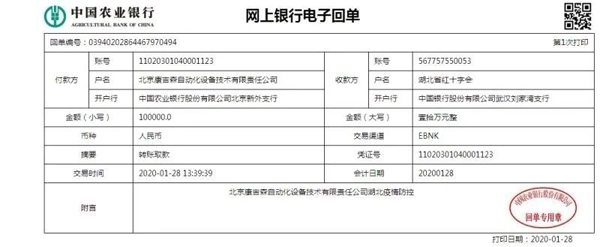 1月27日北京康吉森自動化公司向湖北省紅十字協(xié)會捐款10萬元及疫情重災(zāi)區(qū)公司員工每人3000元給予支持關(guān)懷。以小康大愛和守望相助精神助力早日打贏這場沒有硝煙的戰(zhàn)役。