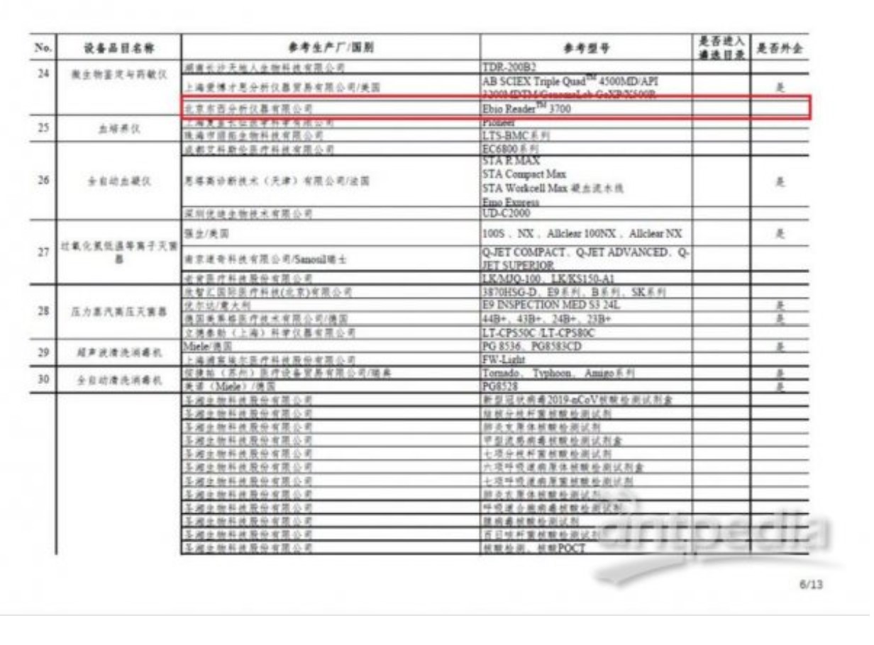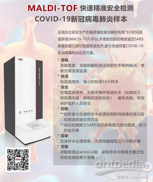 2020年2月25日,北京東西分析儀器有限公司自主研發(fā)生產(chǎn)的 Ebio ReaderTM3700 全自動(dòng)飛行時(shí)間質(zhì)譜系統(tǒng) (MALDI-TOF)入選中國醫(yī)學(xué)裝備協(xié)會推薦的《新冠肺炎疫情防治急需醫(yī)學(xué)裝備目錄(第三批)》。