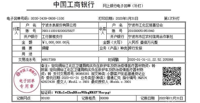2020年1月31日,寧波水表以公司名義通過江北區慈善總會向江北區衛生健康局定向捐款100萬元,并于第一時間組織力量采購價值近60萬的KN95防護口罩發往急需的武漢等地,與此同時,公司員工紛紛援手,多渠道捐款達5萬多元,以實際行動支援全國人民打贏這場沒有硝煙的戰爭。