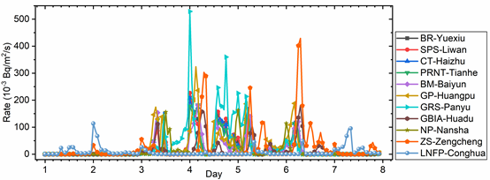 模型輸出廣州市各區放射性物質沉降速率