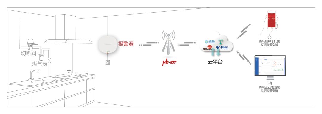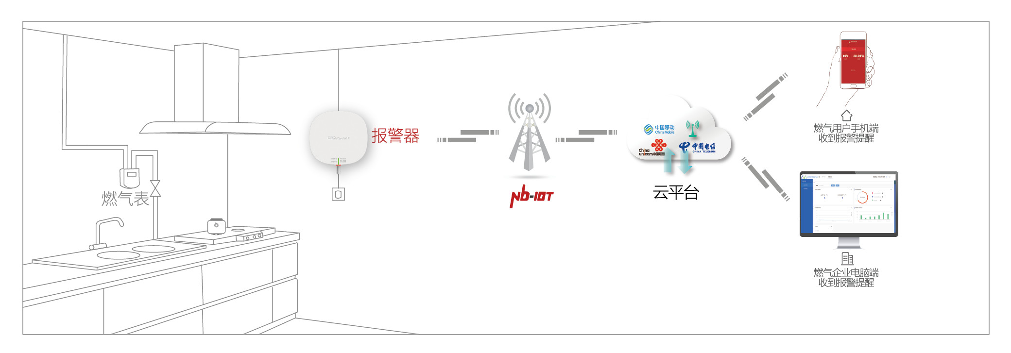 場(chǎng)景2:報(bào)警器 + NB-IoT燃?xì)獗?