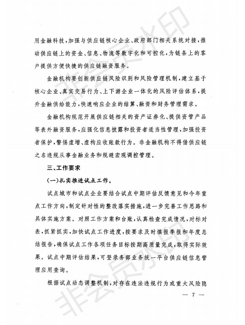 通知強調,試點城市和試點企業要扎實推進試點工作,結合試點中期評估反饋意見和今年重點工作方向,制定針對性的整改落實措施,進一步完善工作思路和具體實施方案,加快試點工作進度,確保試點工作各項任務目標按期高質量完成;各部門要加強業務協同指導,精準扎實有序推動供應鏈全面復工復產,加強日常檢查監督,指導各地加強供應鏈領域“政產研學用”有機融合;各地要立足本地實際,加快復制推廣典型經驗。