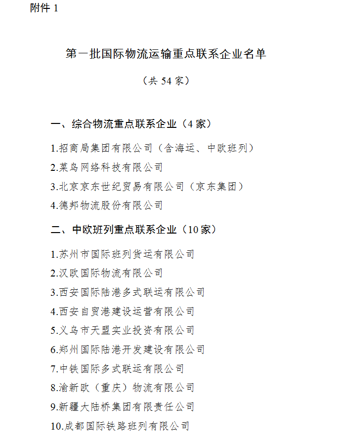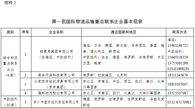 附件:1.第一批國(guó)際物流運(yùn)輸重點(diǎn)聯(lián)系企業(yè)名單.doc