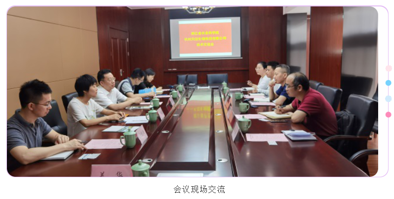 天邁生物是浙江省農(nóng)業(yè)科創(chuàng)園首批入駐企業(yè)。在如何“充分發(fā)揮科研單位和企業(yè)優(yōu)勢,走好科技成果轉(zhuǎn)化的最后一公里”背景下,2020年6月5日上午,浙江省農(nóng)業(yè)科學院楊院主持召開了 “浙江省農(nóng)業(yè)科學院/杭州天邁生物科技有限公司技術(shù)交流會”。與會人員有:省農(nóng)科院的王主任、錢主任、楊主任、何博士、姜博士及以天邁生物董事長趙澎濤為首的企業(yè)方一行五人。