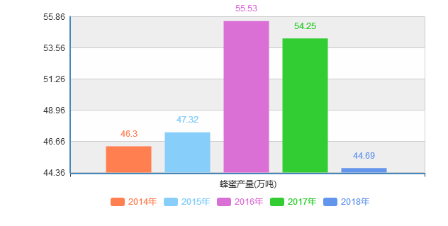 圖1:近五年中國蜂蜜產(chǎn)量統(tǒng)計 來源:國家統(tǒng)計局