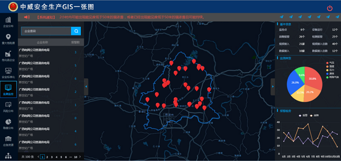 GIS一張圖:圍繞5類高危行業(yè)領(lǐng)域及重點(diǎn)監(jiān)管對(duì)象(危化品、煙花爆竹、非煤礦山、煤礦、工業(yè)企業(yè)),基于三維GIS場(chǎng)景渲染引擎技術(shù),可配置、可級(jí)聯(lián)聚合各類業(yè)務(wù)輔助數(shù)據(jù),依托“物聯(lián)網(wǎng)+云監(jiān)管”模式,實(shí)現(xiàn)企業(yè)安全風(fēng)險(xiǎn)動(dòng)態(tài)在線監(jiān)測(cè)、可視化監(jiān)管,輔助制定安全風(fēng)險(xiǎn)應(yīng)急策略,全面提升安全監(jiān)察能力和應(yīng)急救援水平。