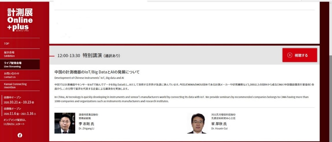 由中國儀器儀表行業(yè)協(xié)會(CIMA)與日本電氣計測器工業(yè)會(JEMIMA)共同組織的日本計測展2020 OSAKA中國論壇于10月22日在日本大阪舉辦,受全球新冠肺炎疫情影響,展會采取線上+線下的方式舉行,重點探討在新工業(yè)革命中測控技術(shù)的作用和未來前景。