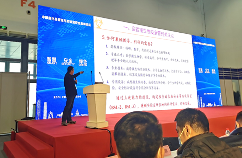 不只是化學(xué)實驗室,如果操作不當(dāng),安全管理不到位同樣也會使生物實驗室成為安全隱患。軍事科學(xué)院軍事醫(yī)學(xué)研究院生物安全研究所原主任李勁松通過題目為《實驗室生物安全管理與防護要點》的報告向與會者講解了生物實驗室的管理經(jīng)驗,管理制度與法律法規(guī),并根據(jù)多年的工作實踐經(jīng)驗闡述了相關(guān)防護工作的要點。