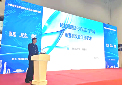 北京市公安局治安管理總隊危險物品管理支隊谷寶峰中隊長首先上臺演講。谷隊長以“易致爆危險化學(xué)品安全管理重要意義及工作要求”為題,通過引用國內(nèi)外及其在工作中偵辦的真實案例生動的講述了易致爆危險化學(xué)品、易制毒危險化學(xué)品對人身和社會帶來的嚴(yán)重危害,著重介紹了相關(guān)法律法規(guī),闡述了做好?;饭芾韺τ诮ㄔO(shè)“平安中國”的重要意義。