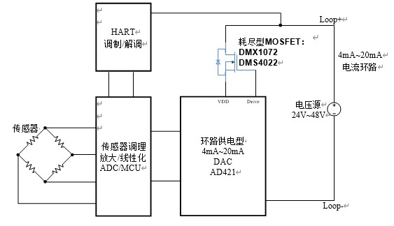 下面,以一款常用的智能變送器為例簡要說明耗盡型 MOSFET 在工業傳感器、智能變送器中的典型應用。