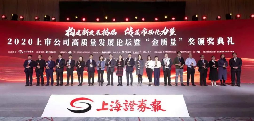 2020年12月23日,由上海證券報(bào)主辦的“2020年上市公司高質(zhì)量發(fā)展論壇”暨“金質(zhì)量”獎(jiǎng)?lì)C獎(jiǎng)典禮在上海浦東隆重舉行。本次論壇以“構(gòu)建新發(fā)展格局 傳遞市場(chǎng)化力量”為主題,匯聚了435家上市公司高管,這些公司合計(jì)市值近18萬(wàn)億元。來(lái)自監(jiān)管層多位領(lǐng)導(dǎo)及上市公司掌門人作了精彩的演講。