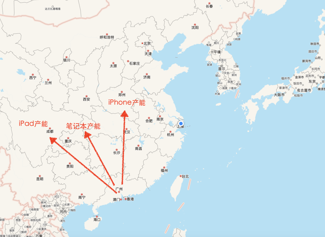 結果就是,電子產業鏈雖然部分離開我國東部沿海,但又大部分被中西部承接:四川生產了全球70%的iPad,河南生產了一半以上的iPhone,重慶則包攬了40%的筆記本電腦。三個省市的電子工業產值合計超過2萬億,相當于整個越南的GDP。