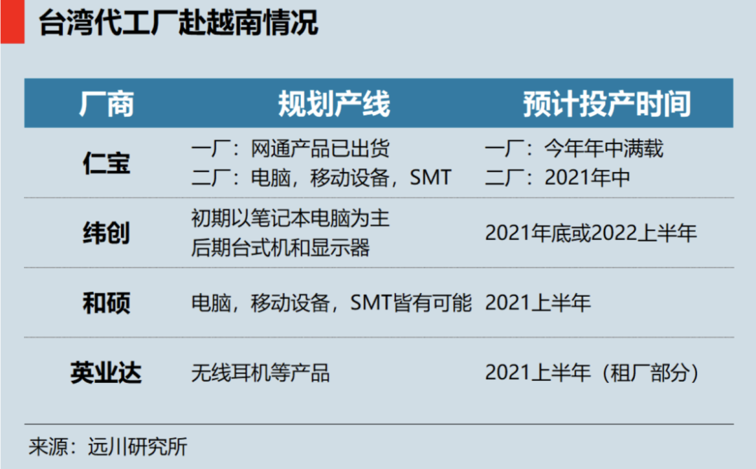 “仁寶”重啟了在北越永福的工廠,網通產品一廠即將滿載,生產PC的二廠也將在明年年中投產。一些心急的企業甚至等不及買地建廠。比如通信設備廠商“啟碁”則直接租下漢達精密的一間廠房,畢竟再晚一兩個月,美國大客戶可能就保不住了。