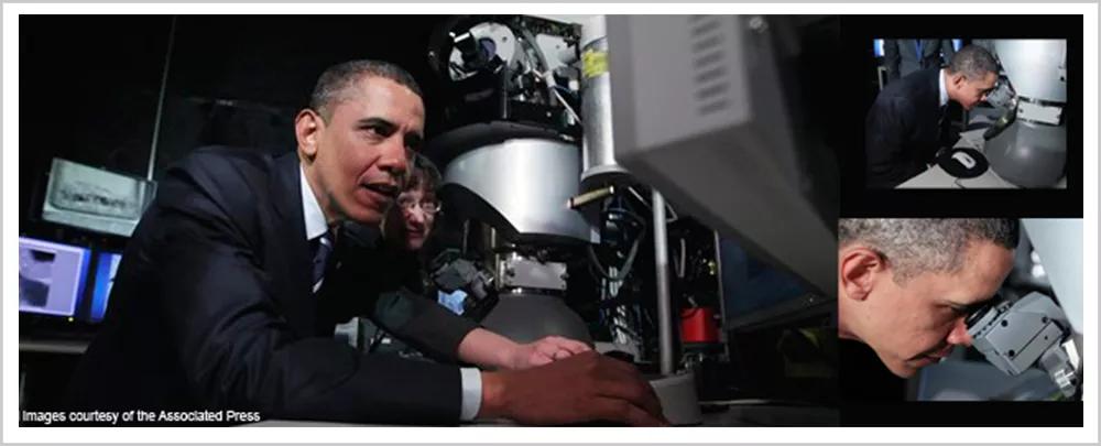 2011年,美國前總統(tǒng)奧巴馬在英特爾參觀TEM實驗室時,用FEI的透射電鏡看到了單個原子,并興奮地表示:“他們讓我對美國的未來感到樂觀。”