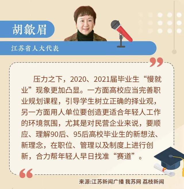 胡歙眉發(fā)現(xiàn),壓力之下,2020、2021屆畢業(yè)生“慢就業(yè)”現(xiàn)象更加凸顯,無論快與慢,年輕人盡快找準(zhǔn)屬于自己的“賽道”才是關(guān)鍵。如何讓畢業(yè)生能夠結(jié)合自身優(yōu)劣勢制定個人規(guī)劃,更好地為國家重點(diǎn)需要發(fā)展領(lǐng)域做出貢獻(xiàn),都是學(xué)校、用人單位都需要思考的問題。