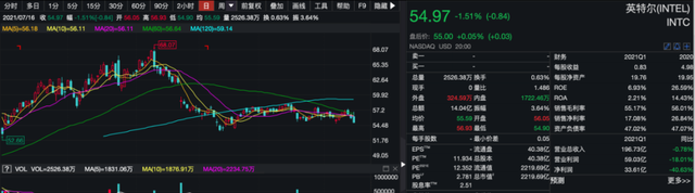 從股價上看,截至7月16日,英特爾股價為54.97美元每股,年內(nèi)漲幅約為11%。同期,臺積電股價也上漲了11%左右。