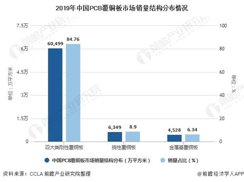 2019年中國PCB覆銅板市場(chǎng)銷量結(jié)構(gòu)分布情況