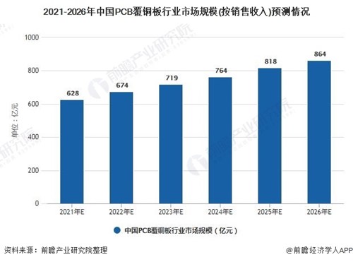 2021-2026年中國PCB覆銅板行業(yè)市場(chǎng)規(guī)模(按銷售收入)預(yù)測(cè)情況