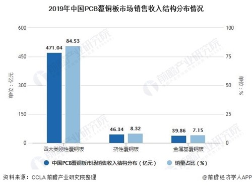 2019年中國PCB覆銅板市場(chǎng)銷售收入結(jié)構(gòu)分布情況