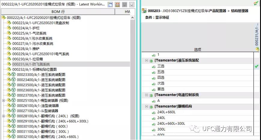 完成超級BOM與產品配置器選項的關聯后,在Teamcenter產品結構管理器中可以進行產品選配,選配過程受配置規則的約束,選配結構可以直接以配置對象的方式掛接到產品的版本零組件對象下。