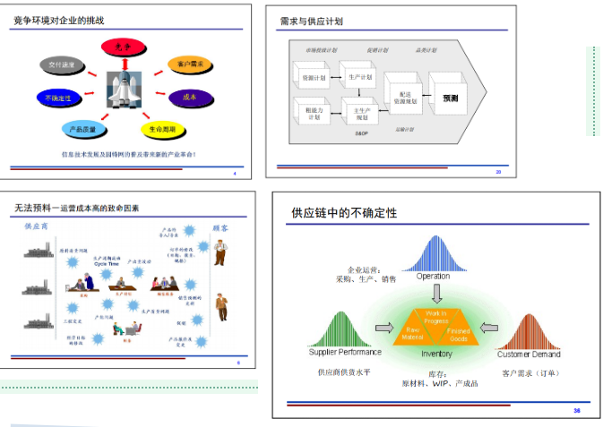 史老師從企業(yè)在經(jīng)營上經(jīng)常遇到的問題入手,分析了運營成本高的致命因素,指出供應(yīng)鏈管理的核心問題就是在提供超常的客戶價值上幫助企業(yè)創(chuàng)造競爭優(yōu)勢。在內(nèi)部供應(yīng)鏈部分,史老師犀利的指出,傳統(tǒng)的內(nèi)部供應(yīng)鏈沒有用系統(tǒng)和整體的視角產(chǎn)生總體相關(guān)價值。外部供應(yīng)鏈部分,他指出,從供應(yīng)商到制造商、到配送、到最終用戶,各個環(huán)節(jié)信息的畸變,導(dǎo)致需求的難以預(yù)測,不能讓生產(chǎn)者對庫存、產(chǎn)能等做出準確的判斷。因此需要一套技術(shù)環(huán)境,來集成“需方”和“供方”的流程,從而減少庫存水平、縮短供應(yīng)鏈周期、降低供應(yīng)鏈成本。史老師在課堂上還分享了戰(zhàn)略尋源管理、供應(yīng)商管理總流程,還向大家展示了通過功能和戰(zhàn)略兩個層面的聯(lián)盟達到改進與客戶伙伴關(guān)系的方法。對于供應(yīng)鏈中的一些不確定性,史老師也從評估風(fēng)險發(fā)生可能性、識別風(fēng)險來源和評估風(fēng)險影響等幾個角度講解,并給出了風(fēng)險管理的策略和應(yīng)對供應(yīng)鏈風(fēng)險的反應(yīng)機制。最后史老師用典型案例詮釋了什么是最佳的供應(yīng)鏈管理。