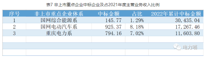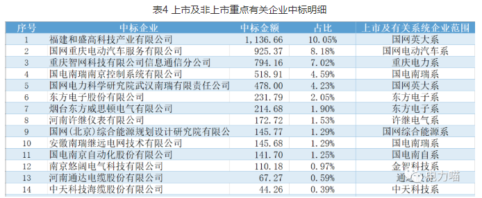 本項(xiàng)目中標(biāo)的3個(gè)非上市重點(diǎn)企業(yè)體系,國網(wǎng)電動(dòng)汽車系中標(biāo)金額最高。